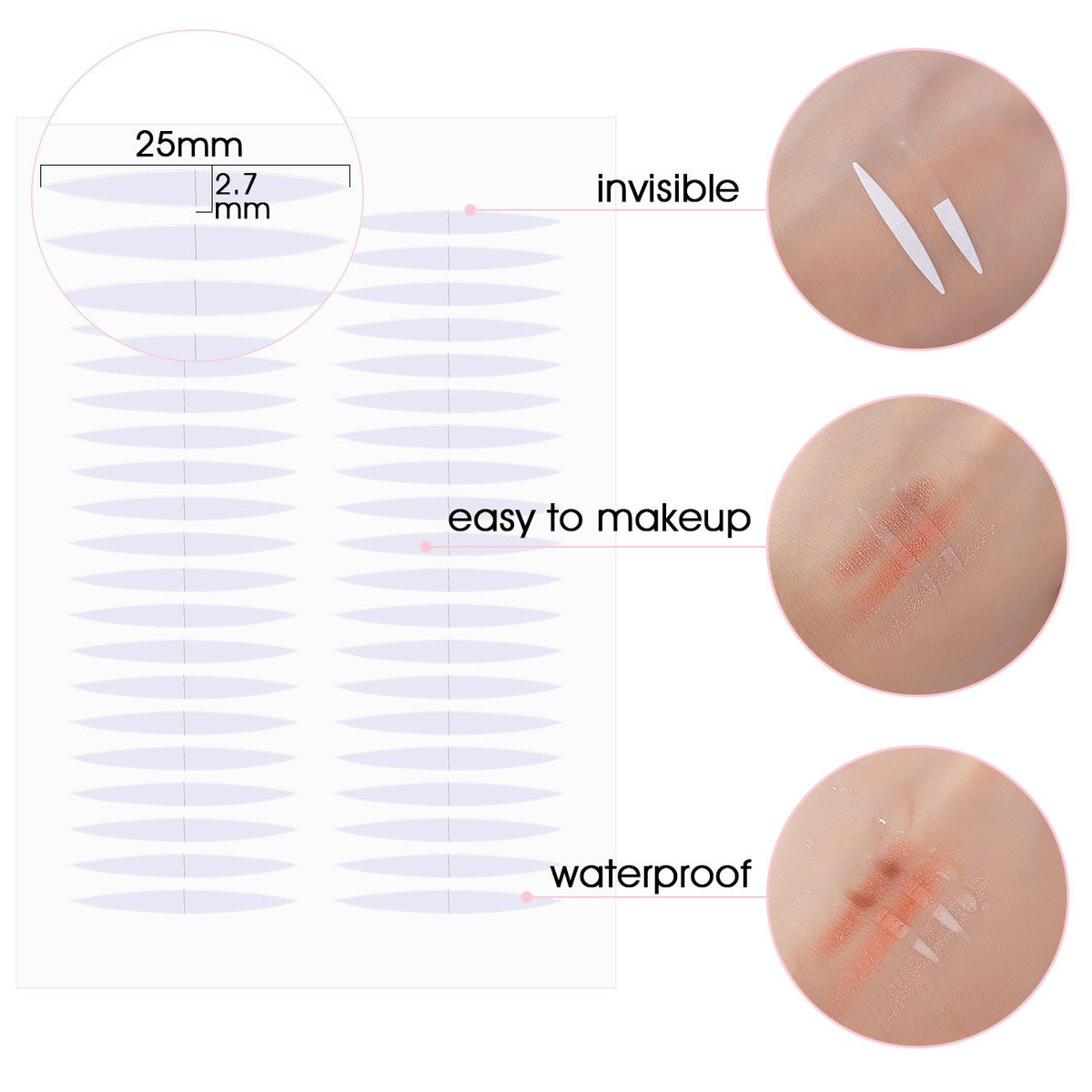 3 Packs Ultra Invisible Two-Sided Sticky Double Eyelid Tapes are designed for instant eyelid lift without surgery. Made with medical-use adhesive fiber, these tapes provide a perfect solution for heavy, saggy, hooded, droopy, or uneven eyelids.