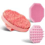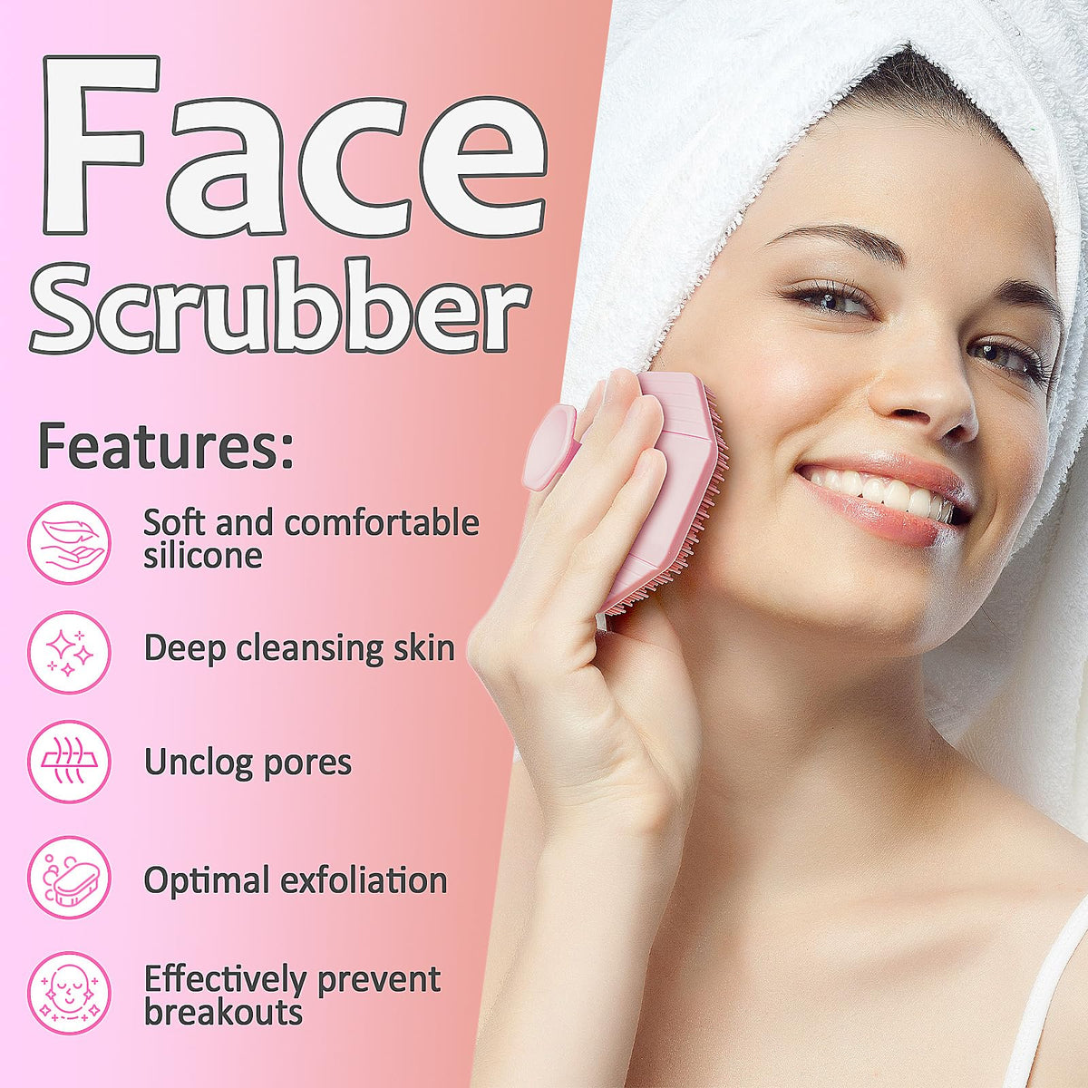 3 Soft Silicone Skin Scrubbers - Body Scrubber Exfoliating Brush Bath Shower Tool, with Gentle Manual Face Cleansing Wash Scrubber, with Hair Scalp Massager Shampoo Brush (Pink)