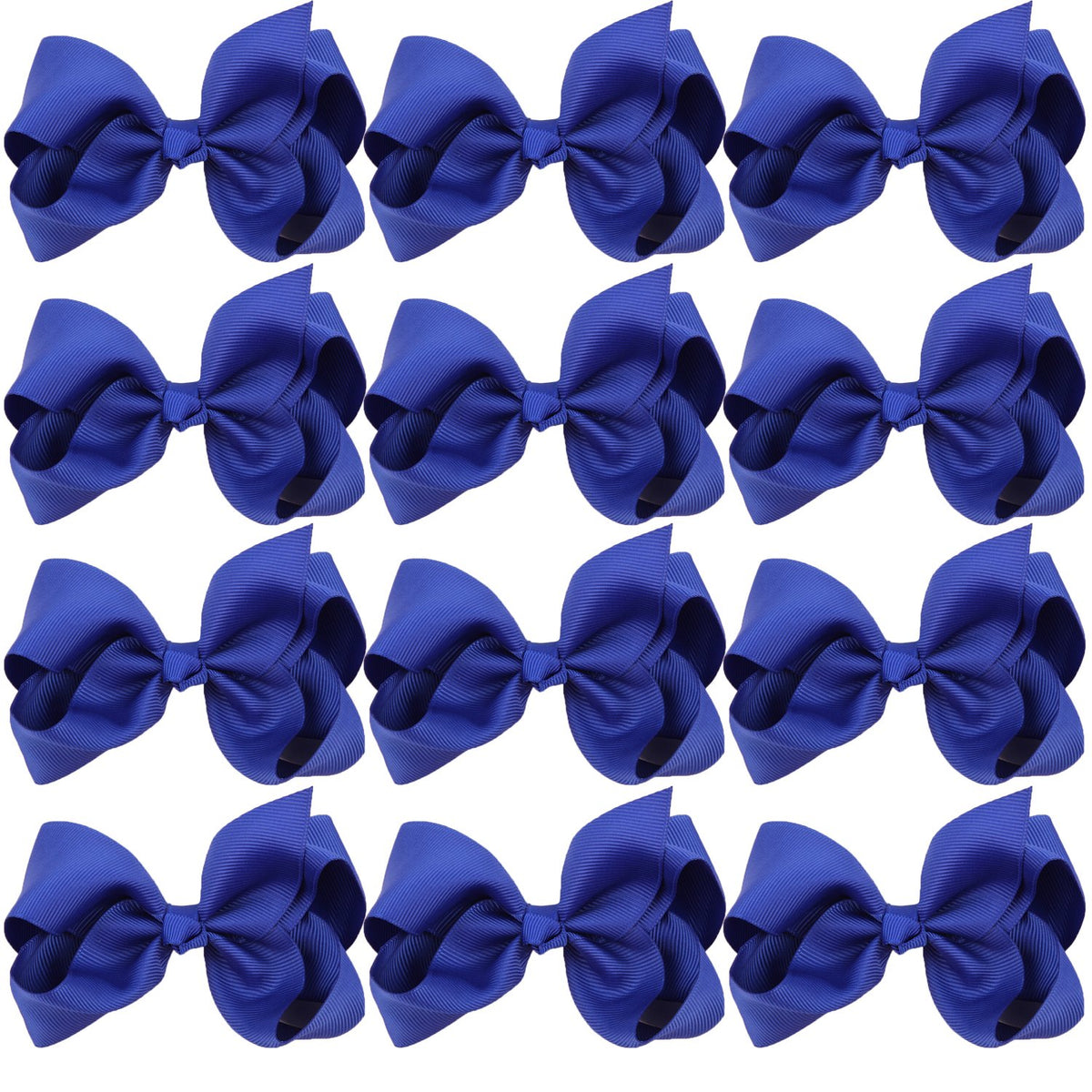 4 Inch Boutique Girls Hair Bows Hair Clips for Baby Girls Toddlers 12 Pcs Solid Color (Royal blue)
