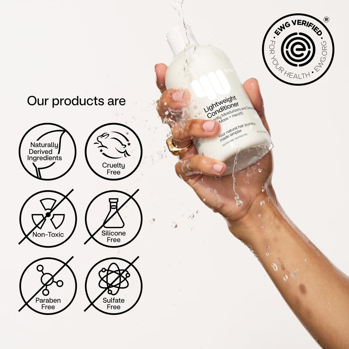 4U by Tia Lightweight Detangling Conditioner - Curly, Kinky, Coily 3A-4C Hair - Hemi15 & Sea Moss Sulfate Free Nourishing Conditioner with Natual Ingredients - Ideal for Braiding (13 fl oz)