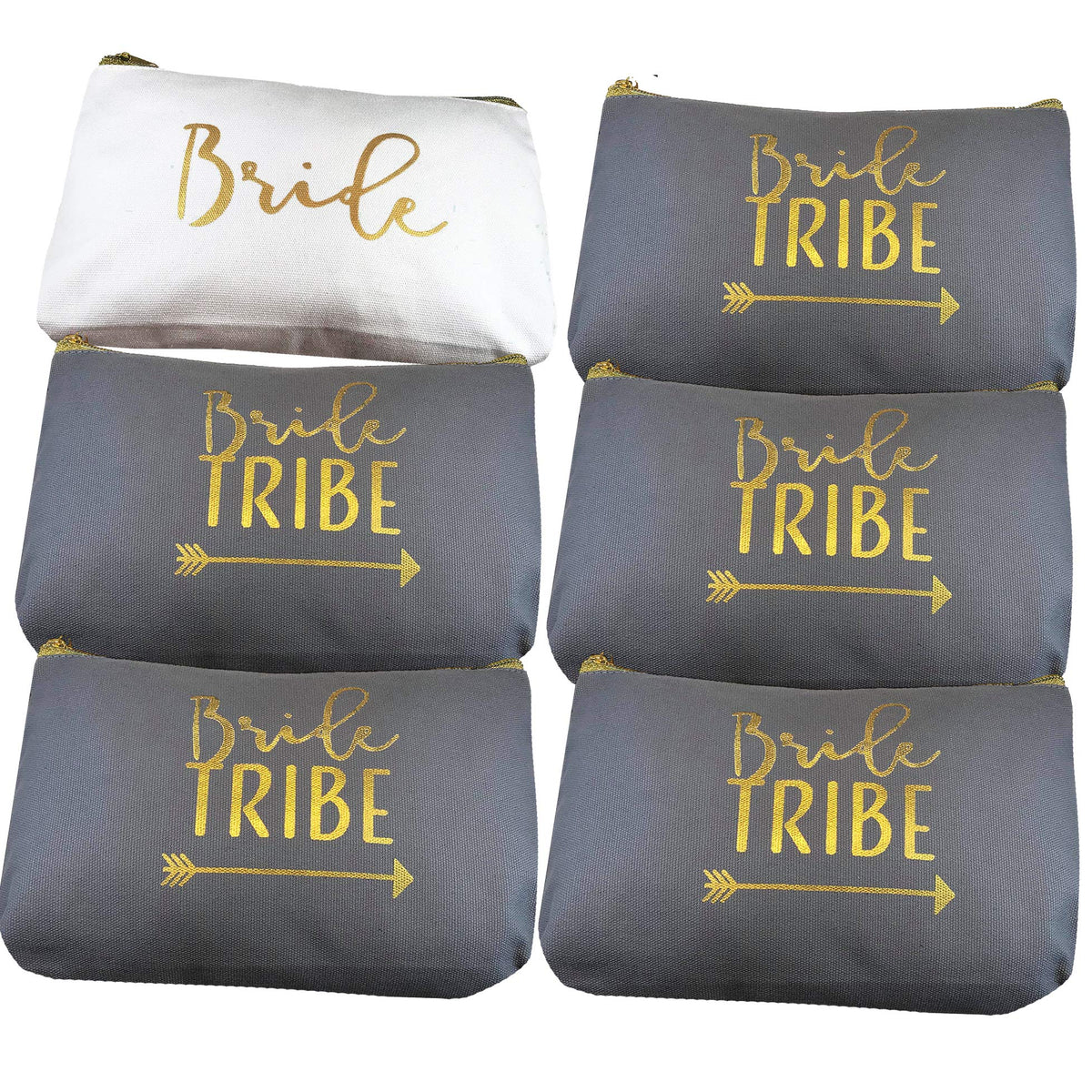 6 Piece Set | Bride Tribe Canvas Cosmetic Makeup Clutch Gifts Bag for Bridesmaid Proposal Box & Bridesmaids Bachelorette Party Favors (Grey)