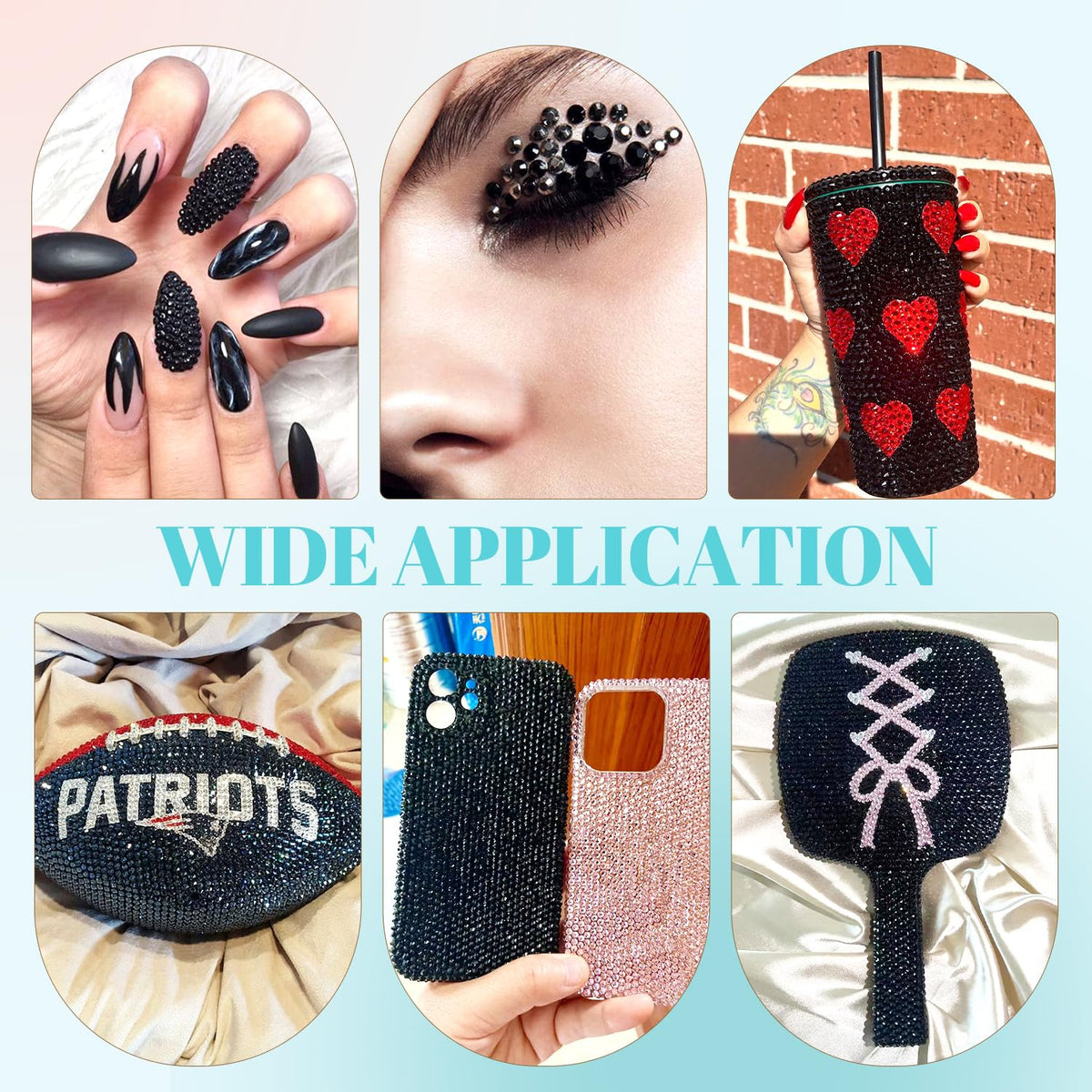 Elevate your crafting projects with the 6100Pcs Resin Rhinestones set. This comprehensive kit includes 2Pcs 10ml B7000 Jewelry Glue and 1 Box of Flatback Crystals Diamond in Black, perfect for bedazzling crafts, DIY nail art, and embellishing clothing, shoes, and tumblers.