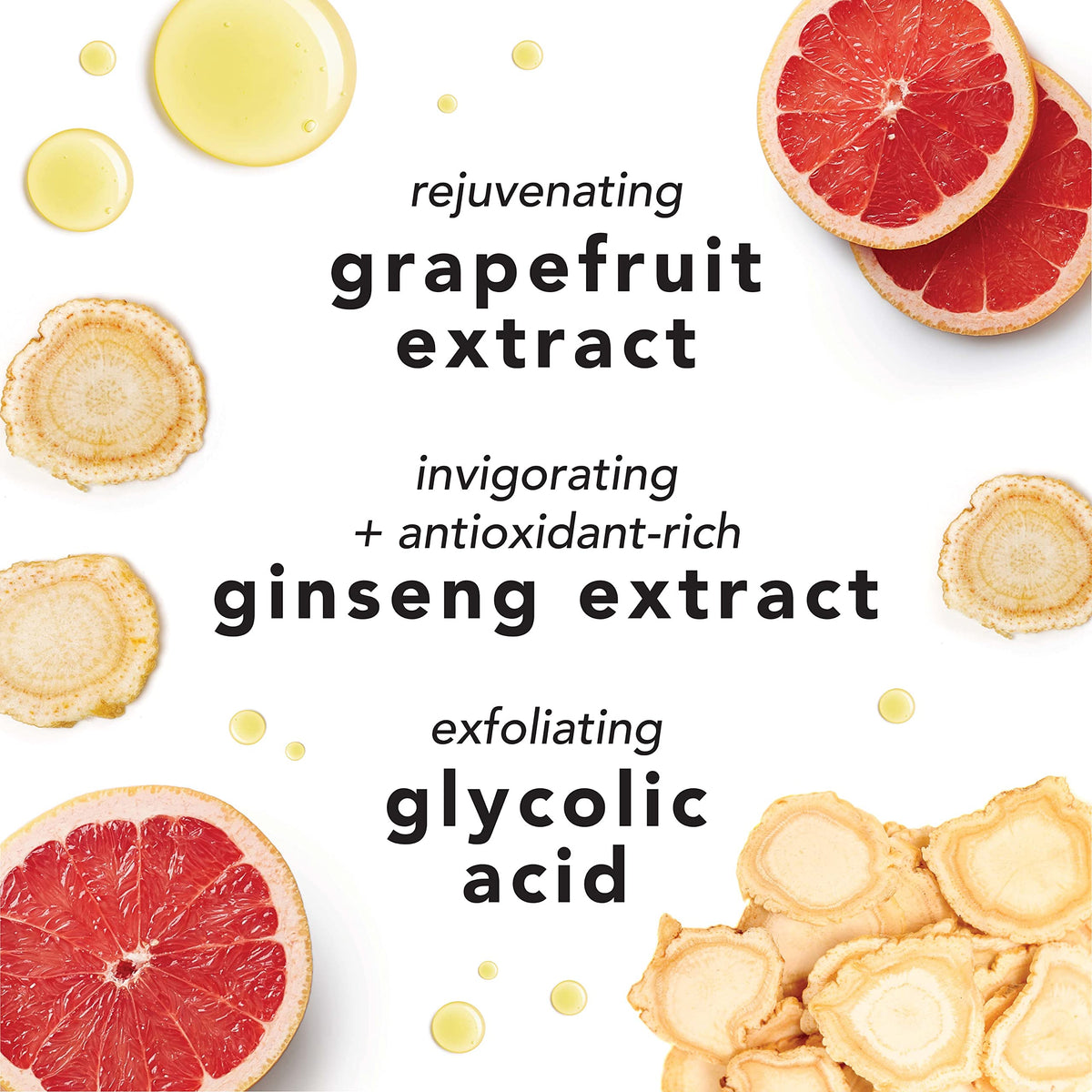 Ingredients: Aqua Water, Eau, Sodium Laureth Sulfate, Propylene Glycol, Glycerin, Sodium Chloride, Glycolic Acid, Citrus Grandis Grapefruit Fruit Extract, Tilia Cordata Flower Extract, Panax Ginseng Root Extract, Panthenyl Hydroxypropyl Steardimonium Chloride, Phenoxyethanol, Ethylhexylglycerin, Parfum Fragrance, Sodium Hydroxide, Chlorphenesin, Sodium Sulfate, Caprylyl Glycol, Linalool, Hexyl Cinnamal, Citronellol, Limonene, Benzyl Alcohol, Geraniol, CI 19140 Yellow 5, CI 14700 Red 4