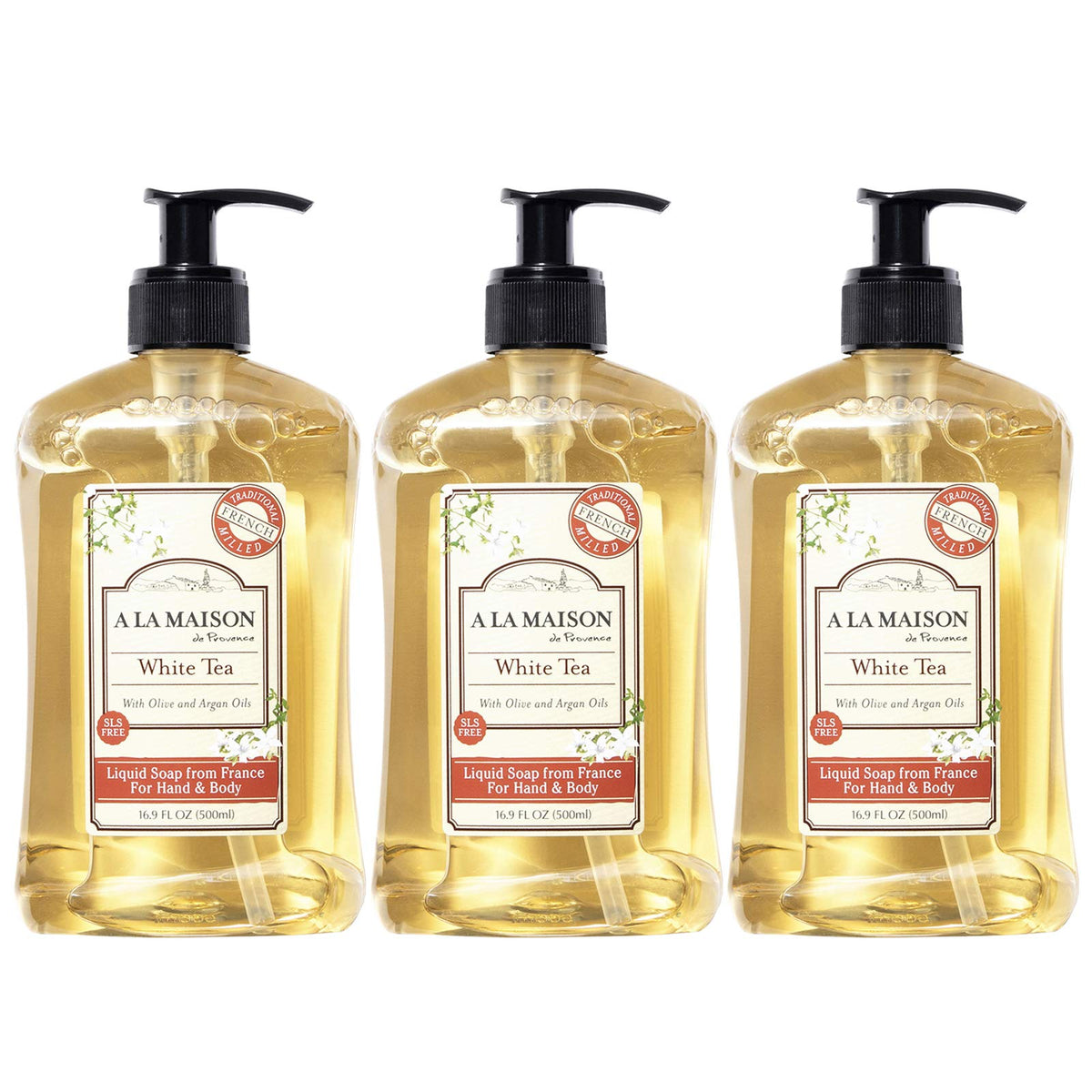 A La Maison de Provence Liquid Soap, White Tea, 16.9-Ounce Bottles (Pack of 3)