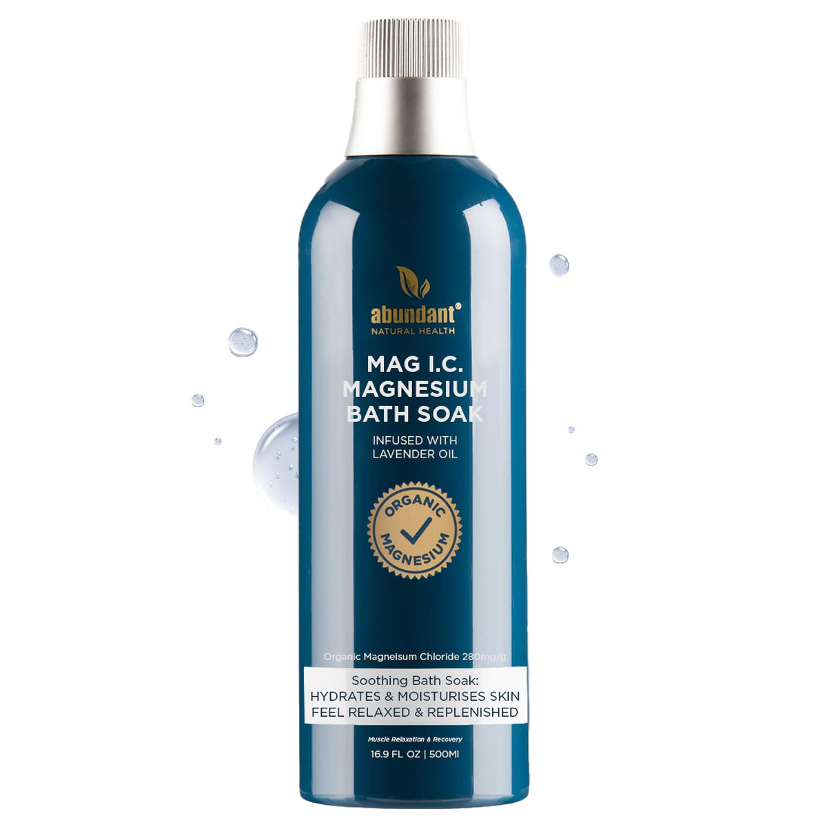 Abundant Natural Health MAG I.C. Magnesium Bath Soak Infused with Lavender Oil to Hydrate, Soothe and Moisturize Skin, Relax and Replenish Muscles, Highly Concentrated Pure Magnesium Salts, 500mL