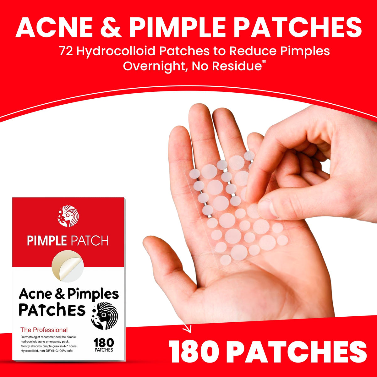 Acne & Pimple Patches – Profeccional Hydrocolloid Acne Patches for Fast Blemish & Zit Removal | Pimple Spot Treatment for Face & Skin | Vegan, Cruelty-Free | 180 Count