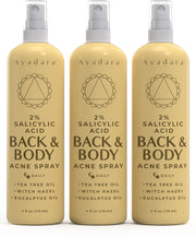 AYADARA Acne Treatment Body Spray with 2% Salicylic Acid, Tea Tree Scent, for All Hair Types, Soothing and Moisturizing, 3-Pack