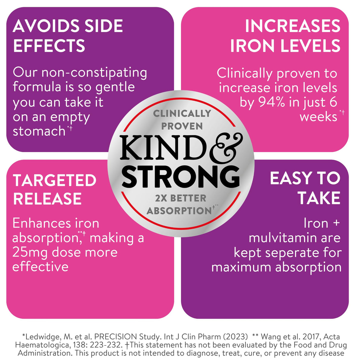 Active Iron Supplement for Women, Non-Constipating, 30 Active Iron Ferrous Sulphate Capsules with 30 Women's Multivitamin Tablets, Clinically Proven to Increase Iron & Energy Levels