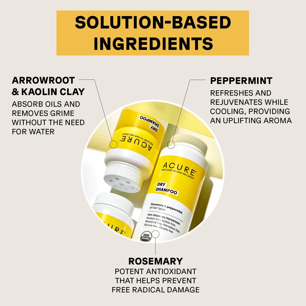 Acure Dry Shampoo - All Hair Types | 100% Vegan | Certified Organic | Rosemary & Peppermint - Absorbs Oil & Removes Impurities Without Water | 1.7 Oz