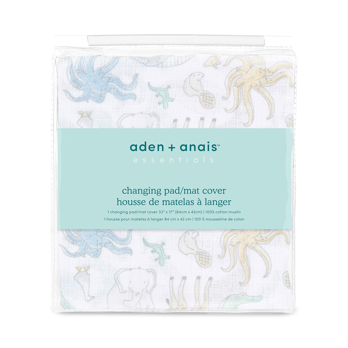 aden + anais Essentials Changing Pad Cover, 100% Cotton Muslin, Super Soft & Breathable, Tailored Snug Fit, Single, Natural History