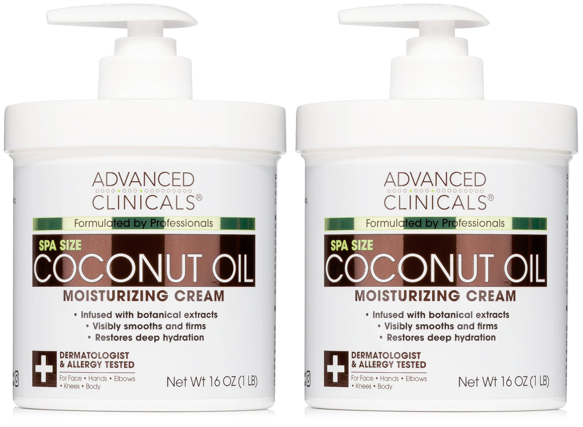 Pamper your skin with Advanced Clinicals Coconut Oil Body Cream. This 16oz, 2PC set offers intense hydration and anti-aging benefits, perfect for extremely dry skin on hands, heels, and feet.
