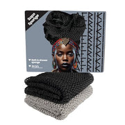 AFRIKI African Net Sponge, African Exfoliating Sponge, Black Owned, Exfoliating Washcloth, Body Exfoliator for Bath and Shower, Back Scrubber, Dead Skin Remover (Black, Grey, 1 Count (Pack of 2))