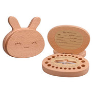 Preserve your baby's first teeth with the AhfuLife Baby Tooth Keepsake Fairy Box Holder. This wooden bunny rabbit-shaped keepsake box is a charming way to store your baby's precious teeth and lanugo bottle.