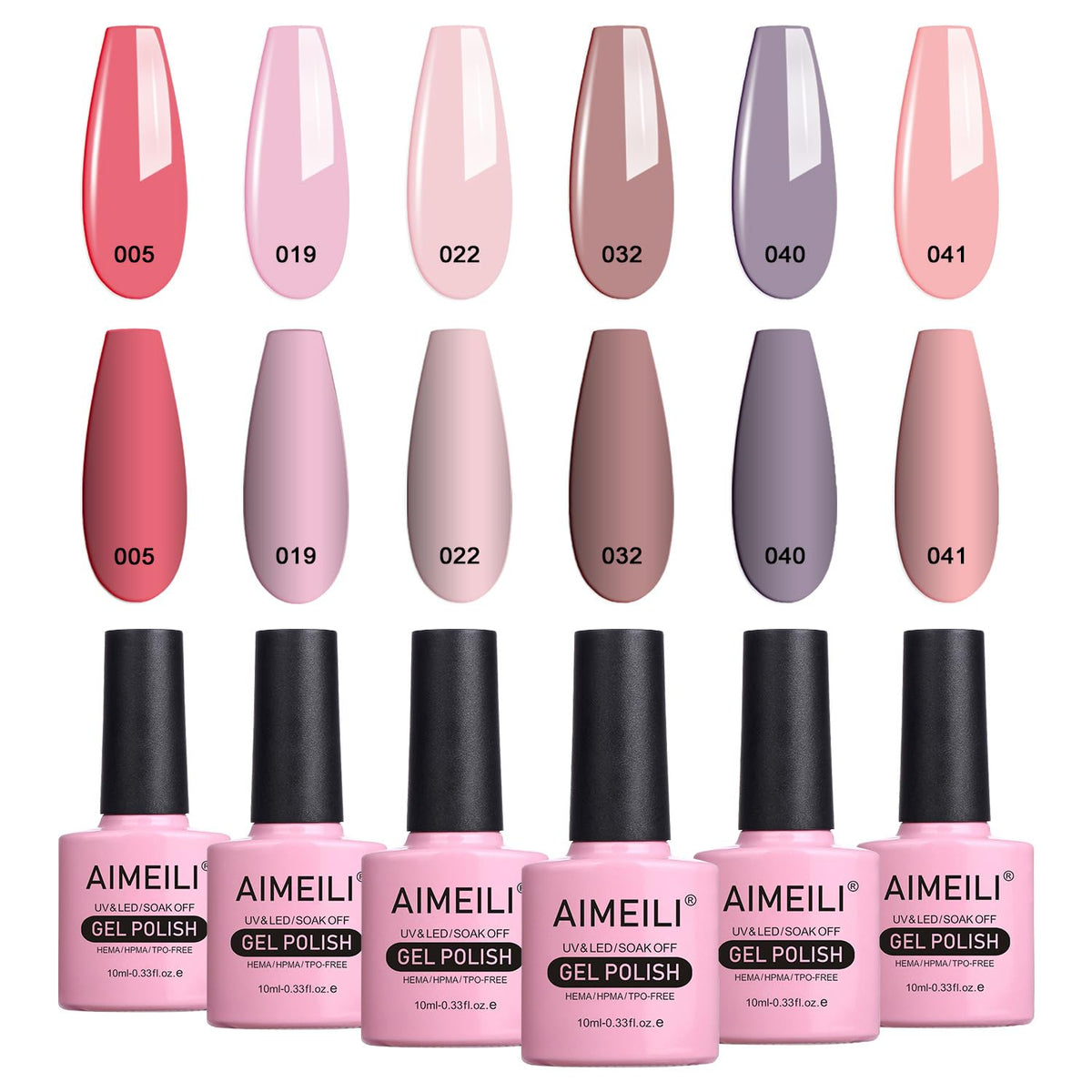 AIMEILI Soak Off Gel Nail Polish Gifts for Mother's Day, Pastel Pink Nude Color Natural Skin Tone Nail Gel Color Set Of 6pcs X 10ml - Kit Set 22