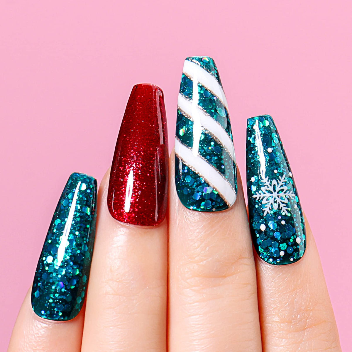 Indulge in AIMEILI Soak Off UV LED Gel Nail Polish in Diamond Glitter Teal Blue Green. This Hema-free formula with diamond glitter offers a cruelty-free and vegan nail art experience in a 10ml bottle.