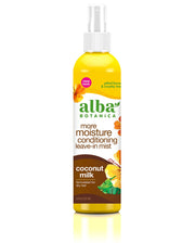 Alba Botanica Mega Moisture Conditioning Leave-In Mist with Coconut Milk is a hydrating hair treatment that nourishes and revitalizes dry, damaged hair. This leave-in mist helps to detangle, soften, and add shine to your hair, leaving it feeling silky and manageable.