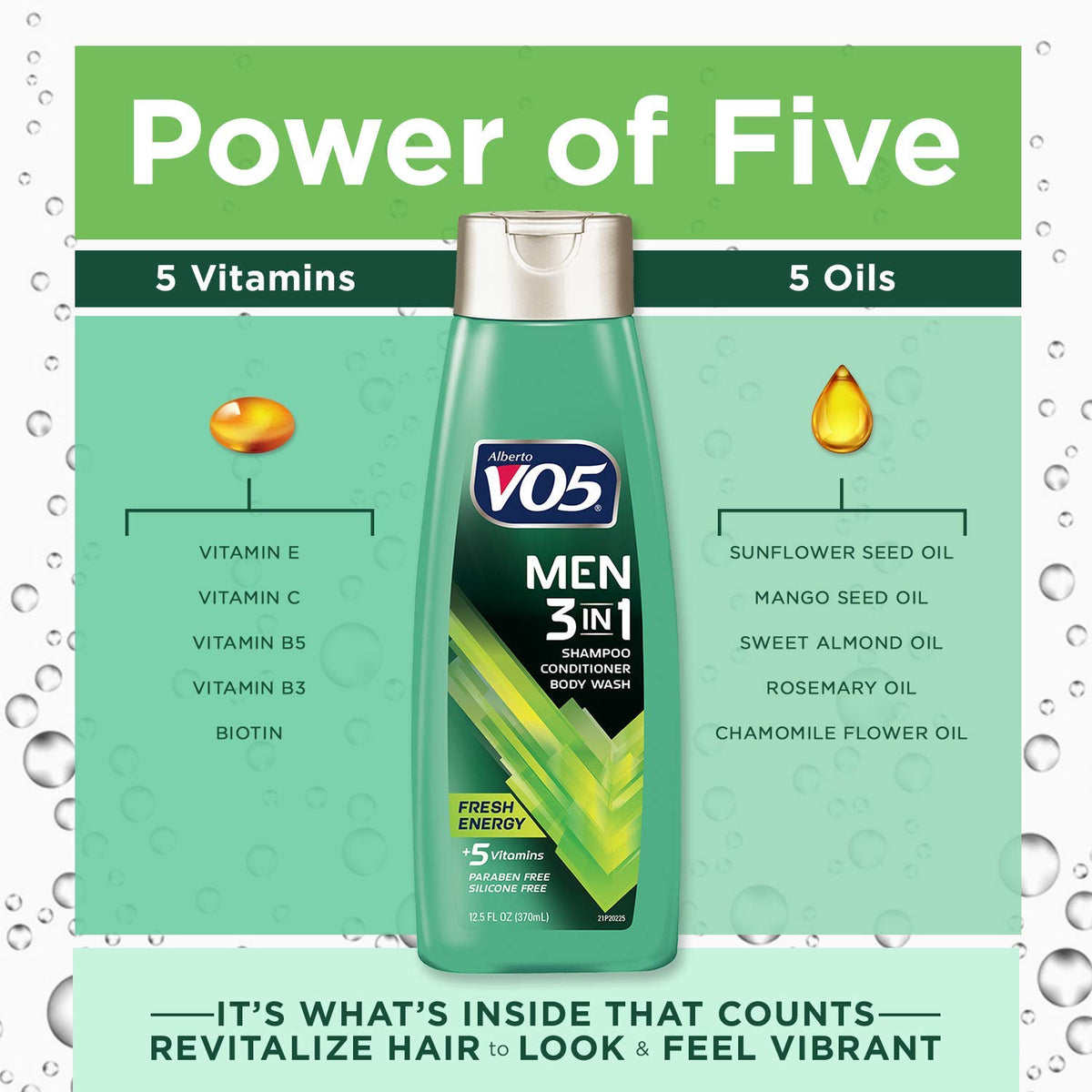 Alberto Vo5 Mens 3-in-1 Shampoo, Conditioner & Body Wash, Fresh Energy 12.5 Fl Oz