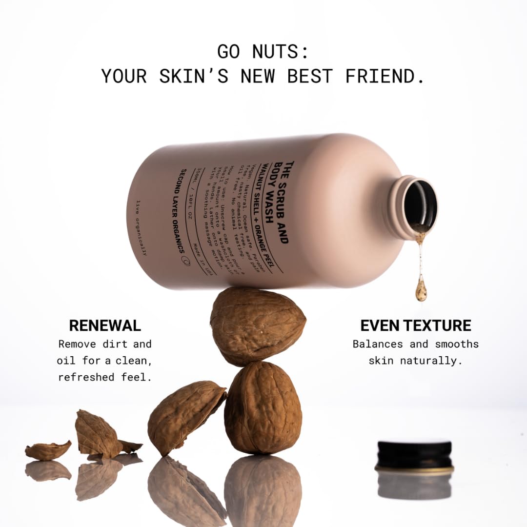 All Natural Body Scrub 10oz - Body Exfoliator with Walnut Shells and Orange Peel - Nourishing Cleanser & Body Scrub - Clean Beauty - Vegan Body Care - Organic Loofa Included