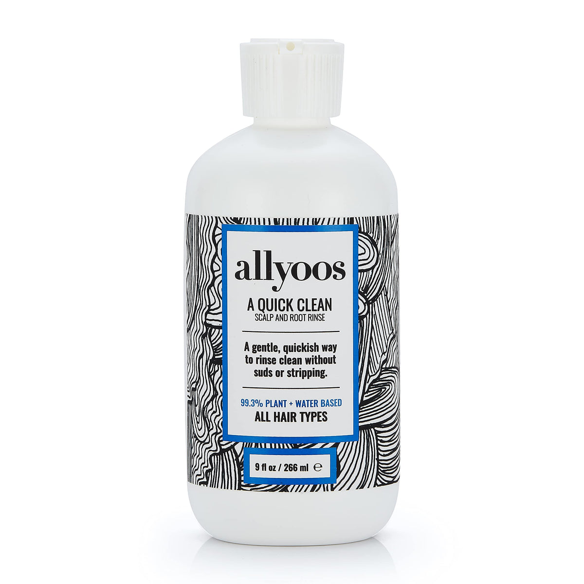 Experience a quick hair refresh with Allyoos A Quick Clean Hair Rinse. This sulfate-free rinse removes sweat, oil, and buildup, balancing your scalp without the need for water.