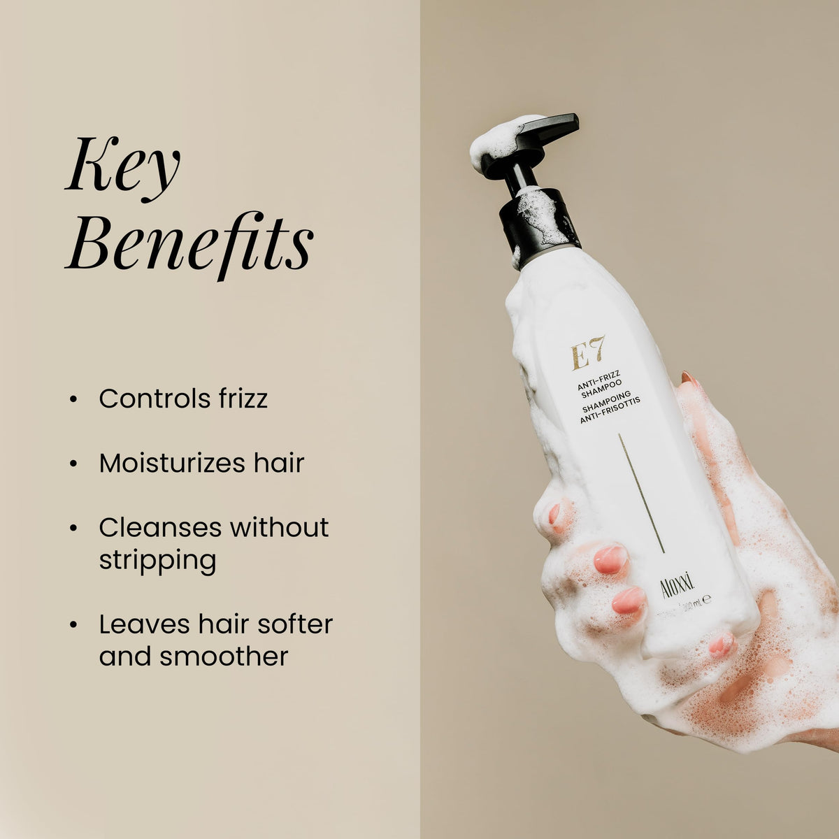 Specific Uses For Product :: Apply to wet hair, lather, and rinse. For best results, follow with ALOXXI E7 Anti-Frizz Conditioner