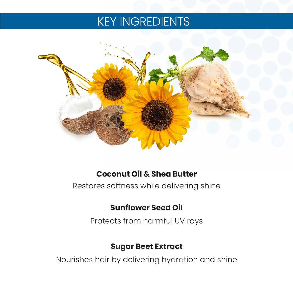 Ingredients: WATERAQUAEAU, CETYL ALCOHOL, BEHENTRIMONIUM CHLORIDE, PROPYLENE GLYCOL, AMODIMETHICONE, ISOPROPYL MYRISTATE, PHENOXYETHANOL, CAPRYLYL GLYCOL, FRAGRANCEPARFUM, PEG12 DIMETHICONE, CITRIC ACID, HYDROLYZED VEGETABLE PROTEIN PGPROPYL SILANETRIOL, CALENDULA OFFICINALIS FLOWER EXTRACT, HELIANTHUS ANNUUS SUNFLOWER SEED OIL, BETA VULGARIS BEET ROOT EXTRACT, BUTYROSPERMUM PARKII SHEA BUTTER, COCOS NUCIFERA COCONUT OIL, LIMONENE, LINALOOL, BASIC VIOLET 2, HC BLUE 15, BASIC YELLOW 57.