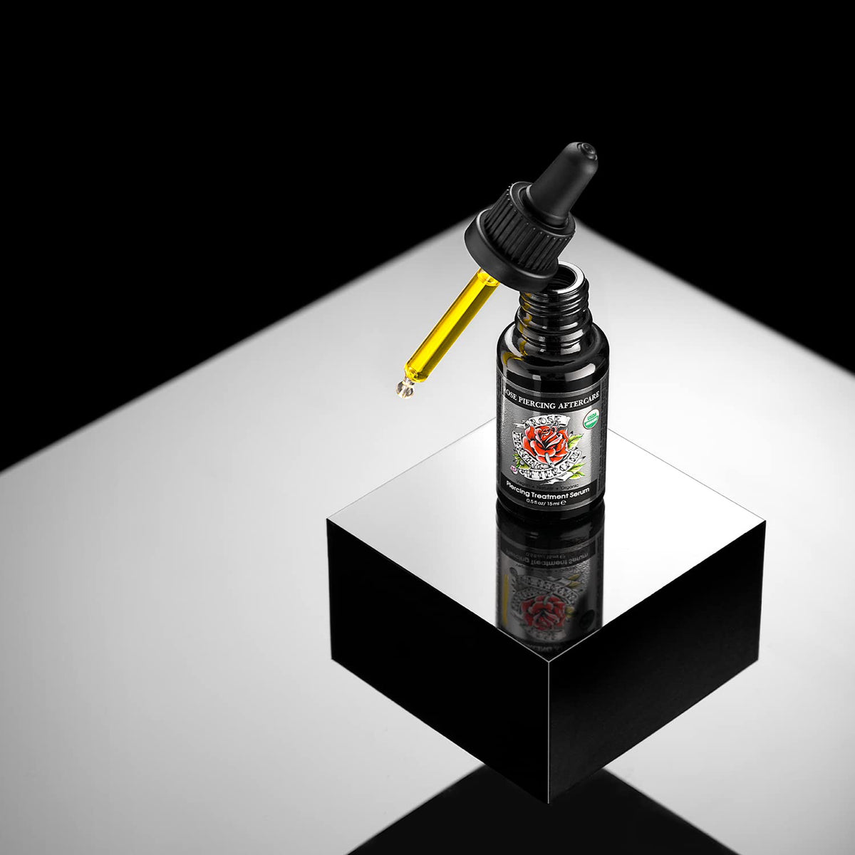 Alteya Organics Piercing Aftercare is a USDA Certified Organic Vegan Piercing Oil that promotes healing and soothes pierced skin. This 0.5 Fl Oz oil is ideal for post-piercing care.