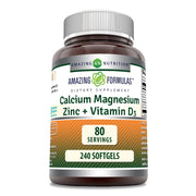 Boost your daily nutrition with Amazing Formulas Calcium Magnesium Zinc D3 Supplement. These 240 softgels provide a non-GMO and gluten-free blend of essential minerals for overall health support. Incorporate this supplement into your routine for improved well-being and vitality.