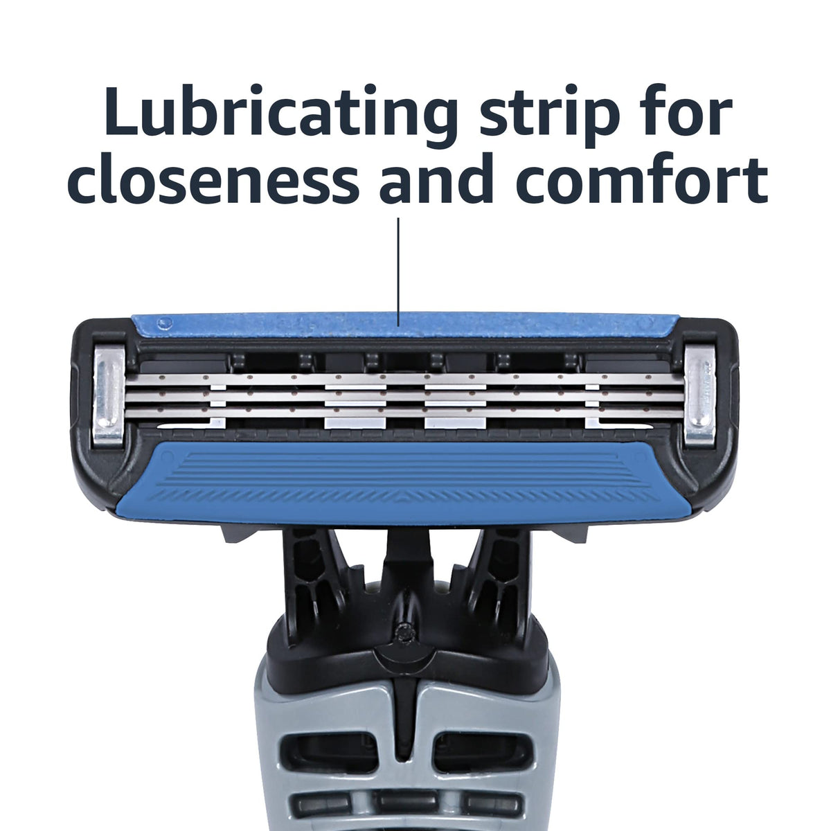 Experience a smooth and comfortable shave with Amazon Basics 3-Blade Disposable Razors for Men. This pack includes 6 razors, providing a convenient and effective shaving solution.
