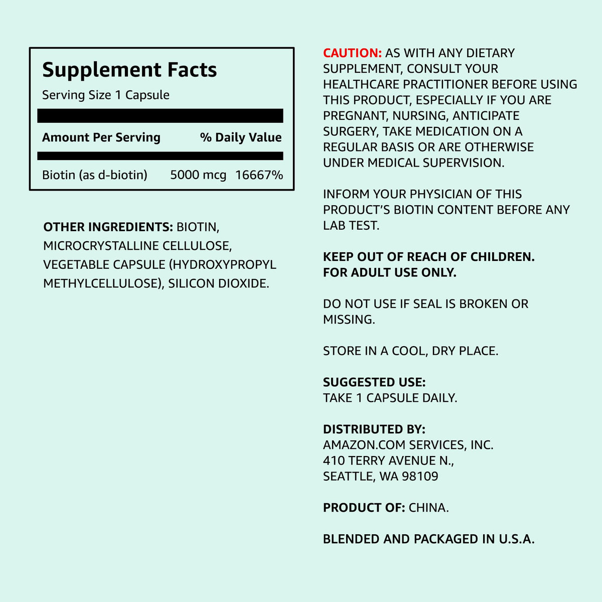 Amazon Elements Vegan Biotin 5000 mcg - Hair, Skin, Nails, 130 Capsules (4 month supply) (Packaging may vary)