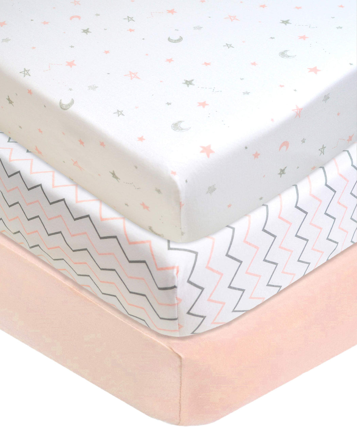 American Baby Company 3 Pack Fitted Pack N Play Playard Sheet 27 x 39, Soft Breathable Neutral 100% Cotton Jersey Pack and Play Sheet, Pink Star/Zigzag, for Boys and Girls, Fits Most Mini Crib