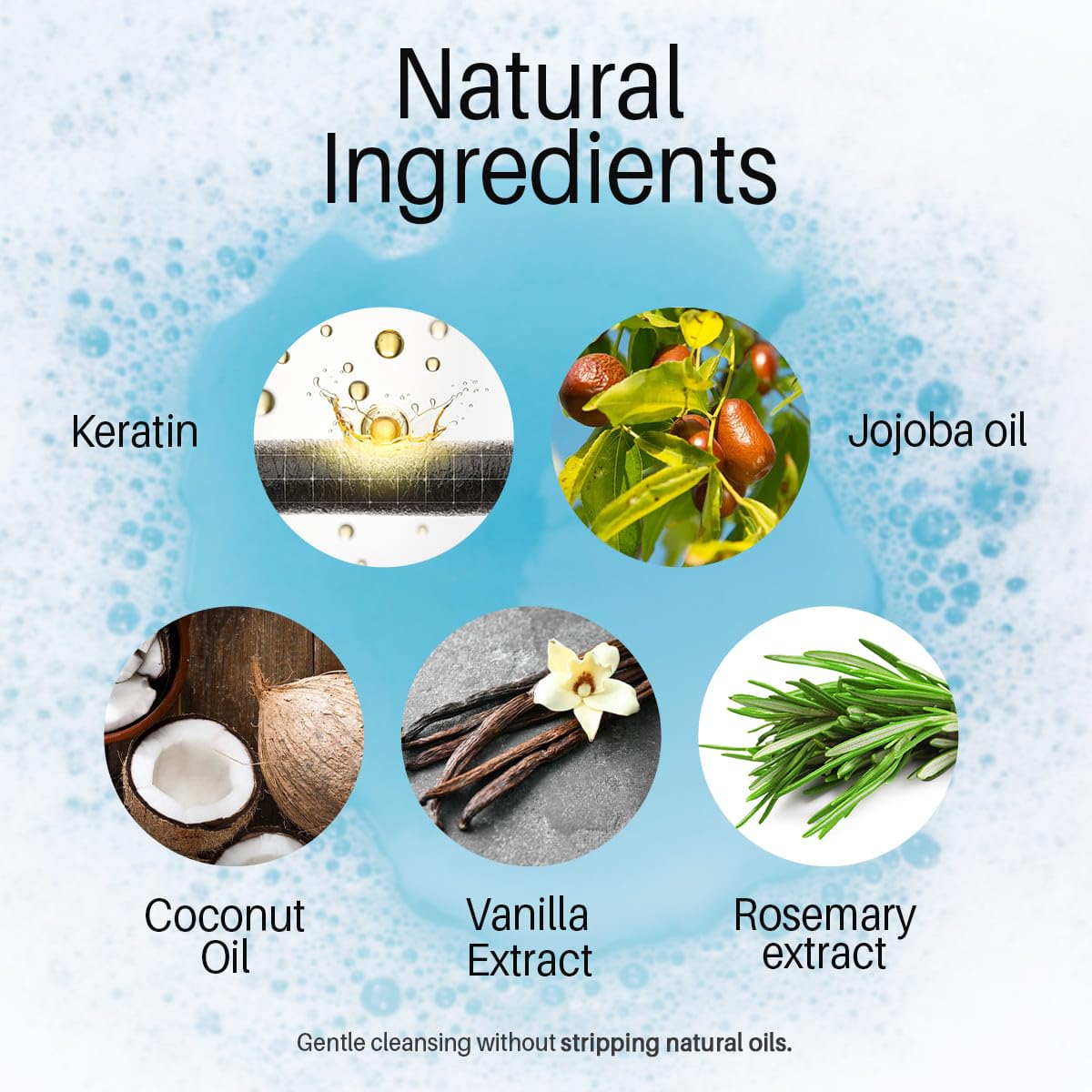 Ingredients :: AMINO ACID SHAMPOO: Purified Water, Cocamidopropyl Betaine, Sodium Lauroyl Sarcosinate, Disodium Cocoamphodiacetate, Sodium C14-16 Olefin Sulfonate, Cocamidopropyl Hydroxysultaine, PEG-7 Glyceryl Cocoate, Glycol Stearate, Polyquaternium-10, Hydrolyzed Silk Protein, Guar Hydroxypropyltrimonium Chloride, Rosemary Extract, Sodium Benzoate, Cocos Nucifera (Coconut) Oil, Citrus Reticulata (Tangerine) Seed Oil, Vanilla Planifolia Fruit Extract, Palmitoyl Isoleucine, Potassium Sorbate, Citric Acid, Jojoba Oil, Hydrolyzed Collagen, Keratin Amino Acids, Cetyl Acetate, EDTA, Biotin, Tocopheryl Acetate (Vitamin E)., AMINO ACID CONDITIONER: Purified Water, Dimethicone, Behentrimonium Chloride, Stearamidopropyl Dimethylamine, Stearyl Alcohol, Keratin Amino Acids, Cetyl Acetate, Lactic Acid, Hydrolyzed Silk Protein, Guar Hydroxypropyltrimonium Chloride, Rosemary Extract, Citrus Reticulata (Tangerine) Seed Oil, Vanilla Planifolia Fruit Extract, EDTA, Hydrolyzed Collagen, Biotin, Palmitoyl Isoleucine, Sodium Benzoate, Potassium Sorbate, Tocopheryl Acetate (Vitamin E).