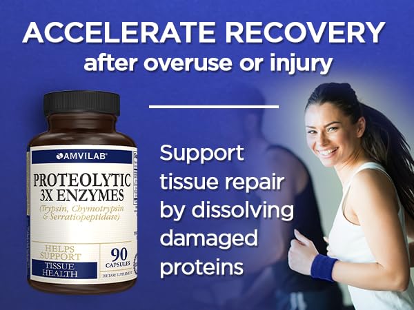 AMVILAB Proteolytic Enzymes 3X is a potent dietary supplement that aids in reducing edema and inflammation from tissue injury. With a blend of Trypsin, Chymotrypsin & Serrapeptidase, this formula supports body wellness and recovery.
