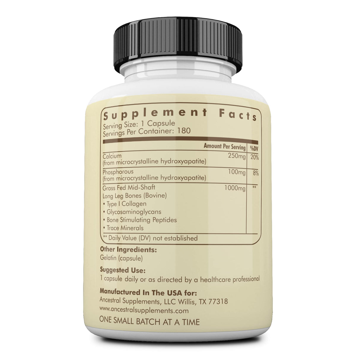 Ancestral Supplements Grass Fed Beef Living Bone Supplement, Bone Meal Capsules Support Bone Health, Oral and Joint Health and Flexibility, Non-GMO, 180 Capsules