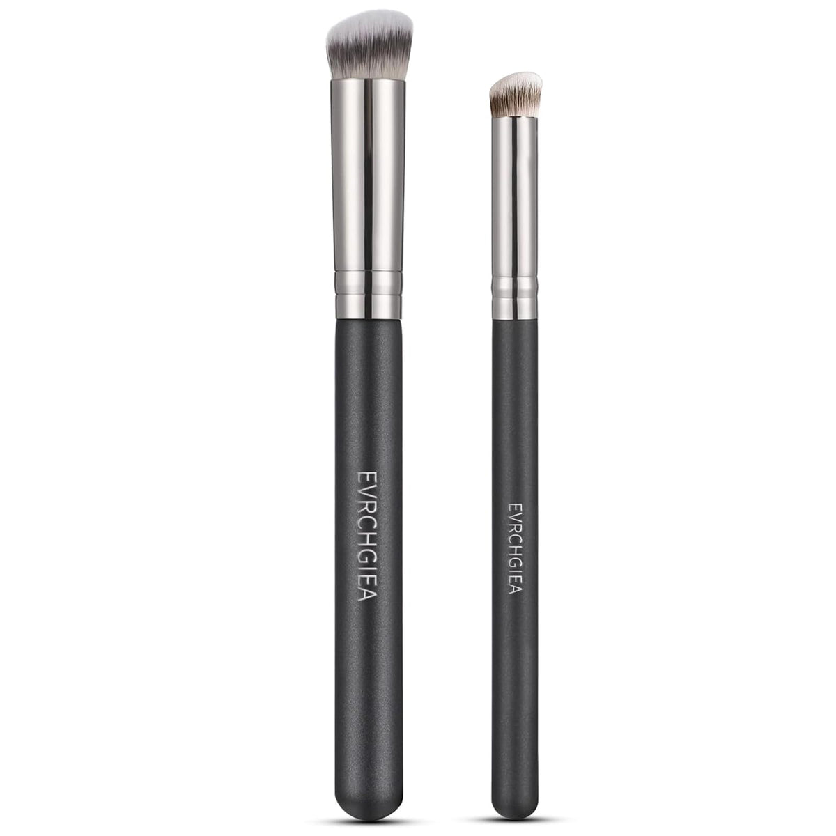 Angled Flat Concealer Brush Set, 2pcs Dense Under Eye Nose Contour Brush for Liquid Foundation Cream Powder Blending Buffing Stippling (270+370)…