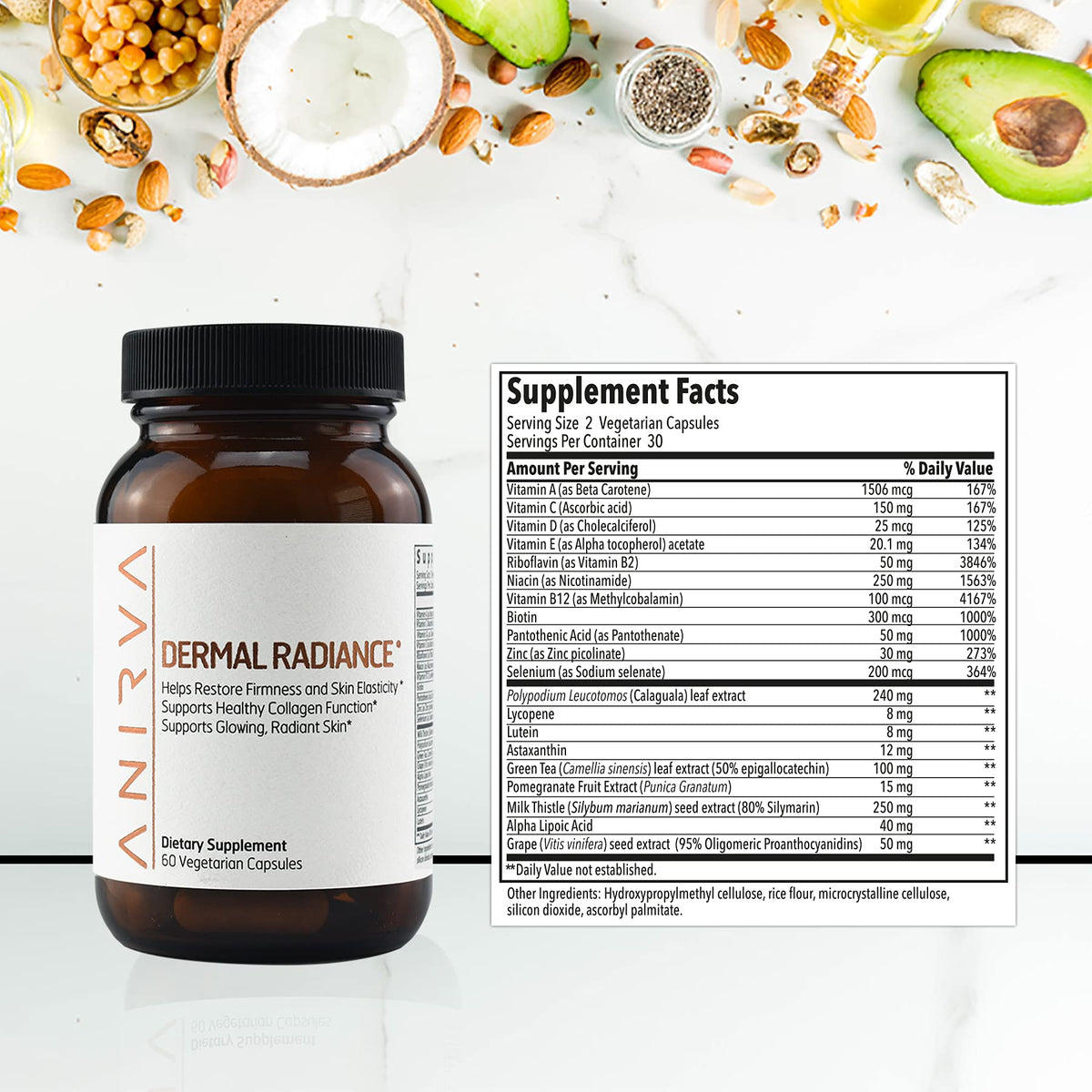 ANIRVA Skin Supplement with Antioxidants, Health and Beauty Supplements with Multivitamins for Glowing Skin, Anti Aging Vitamins Dermal Radiance