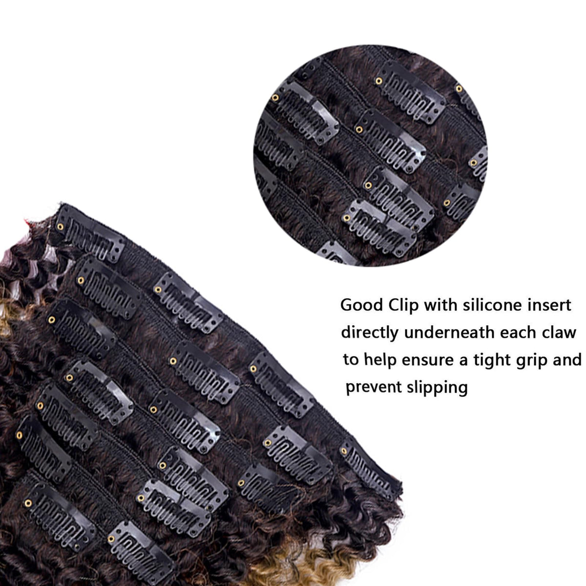 Anrosa Kinkys Curly Clip in Hair Extensions Human Hair 3C 4A Afro Kinky Curly Clip ins Natural Hair Real Remy Thick Human Hair Extensions for Black Women (14 inch, Ombre #1B/27)
