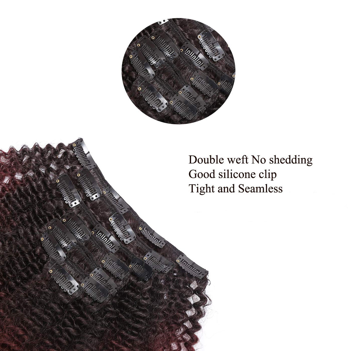 Anrosa Kinkys Curly Clip in Hair Extensions Human Hair 3C 4A Afro Kinky Curly Clip ins Natural Hair Real Remy Thick Human Hair Extensions for Black Women (16 inch, Ombre #1B/99J)