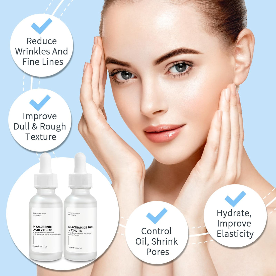 Anti Aging Face Serum Set 2PCS, Niacinamide & Hyaluronic Acid Serums for Wrinkles and Fine lines, Improves Skin Texture, Moisturising Set Oil Control & Pore Shrinkage for All Skins