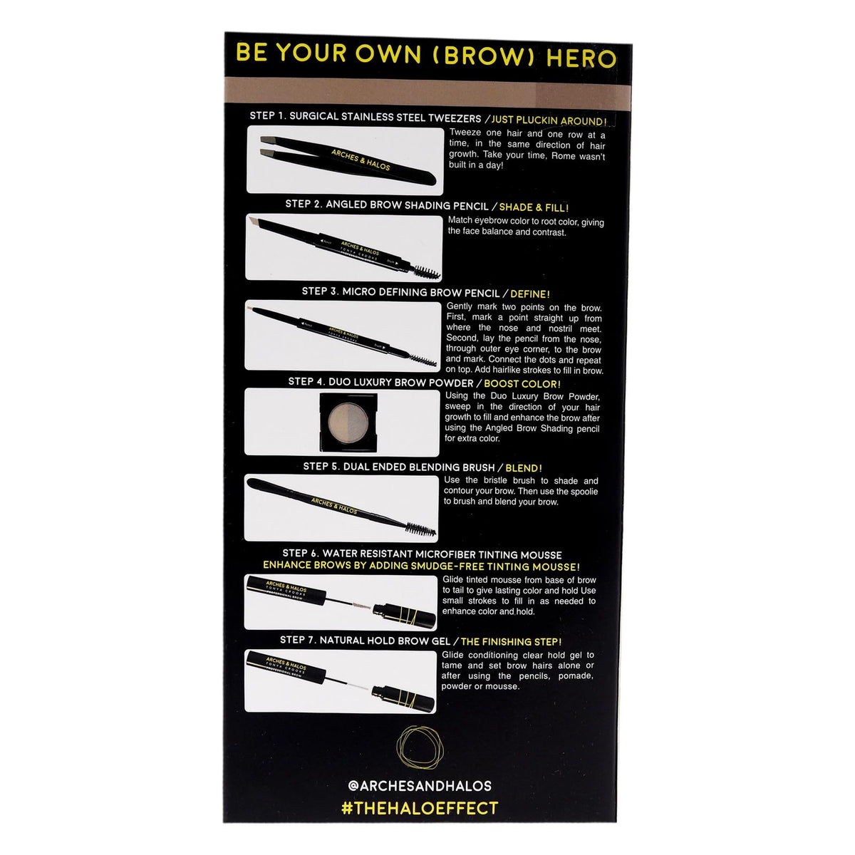 Arches and Halos Ultimate Hero Eyebrow Styling Makeup Kit, Pencil, Gel, Shading, Powder, Mousse, Natural & Bold Precise Brow Shaper, Hypoallergenic, Vegan, Light, Brown, 7 Count