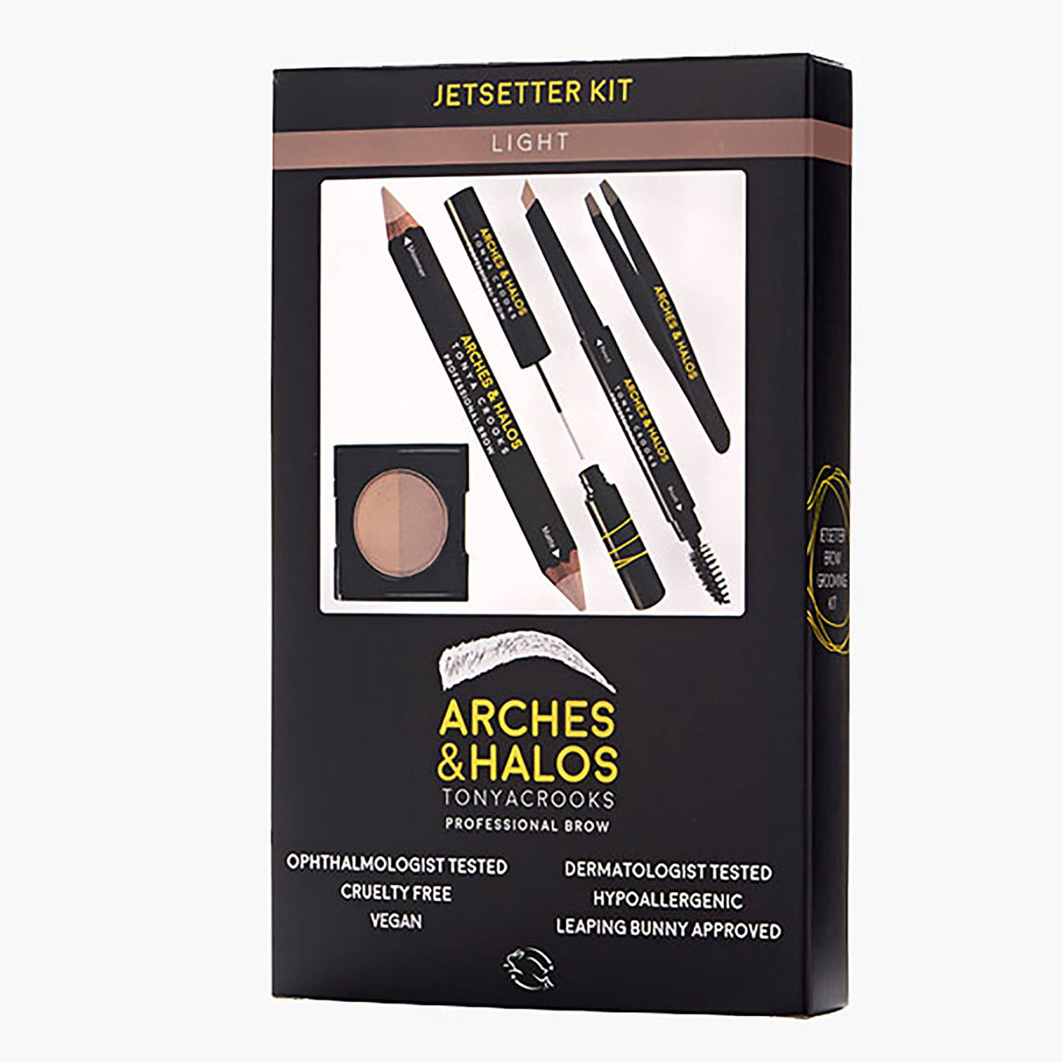 Arches & Halos - Jetsetter Brow Kit - Eyebrow Styling Makeup Kit, Pencil, Gel, Shading, Precise Brow Shaper - Hypoallergenic, Vegan - 6 Pc Kit, Light