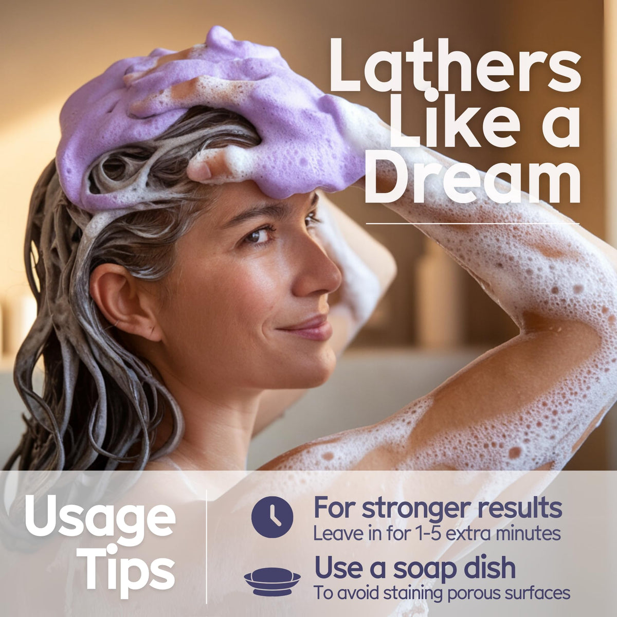 To use, create a lather by rubbing the shampoo bar between your hands or directly onto your hair. Massage the lather into your scalp and rinse off thoroughly.