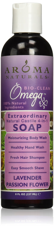 Aroma Naturals Extraordinary Natural Castile 4-In-1 Soap, Lavender Passion Flower, 8 Ounce