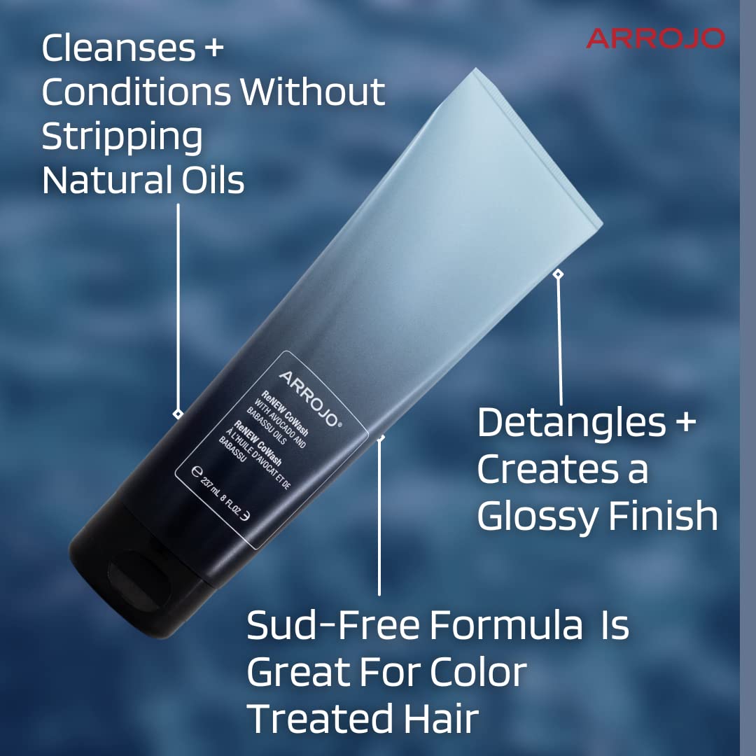 Revitalize your color-treated hair with Arrojo ReNEW CoWash. This sulfate and paraben-free cleansing conditioner is enriched with avocado and babassu oils for nourishing curly and dry hair.