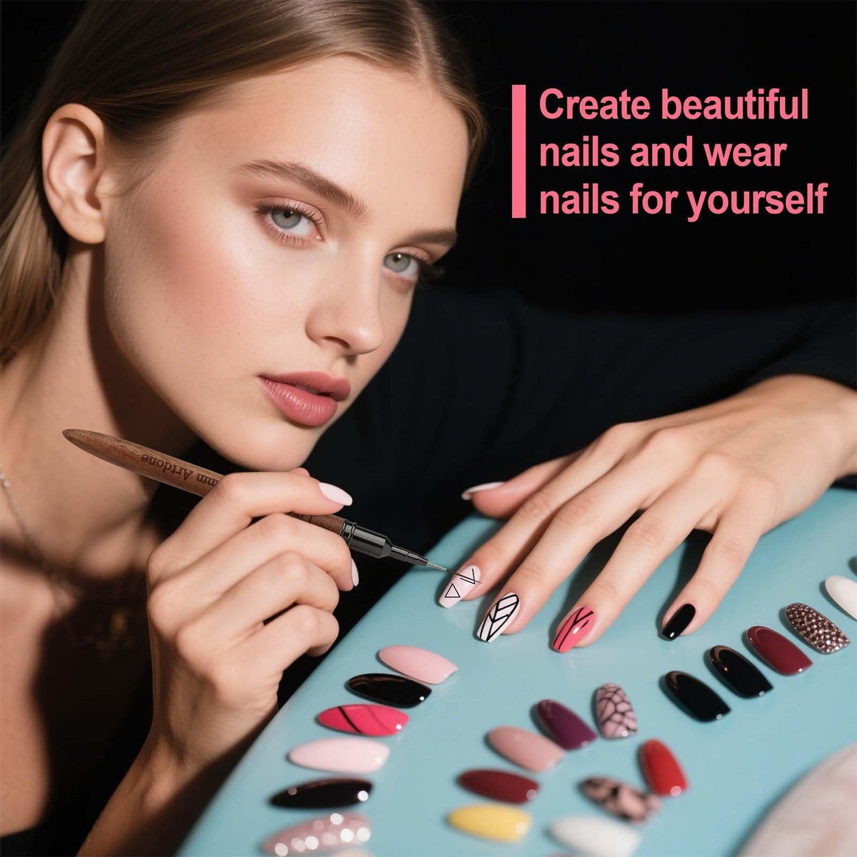 Create intricate nail art with precision using the Artdone Wood Grain Nail Art Pens. This set of 5 brown color nail tools is perfect for long lines, thin details, and fine drawing, ideal for UV gel polish painting and nail design.