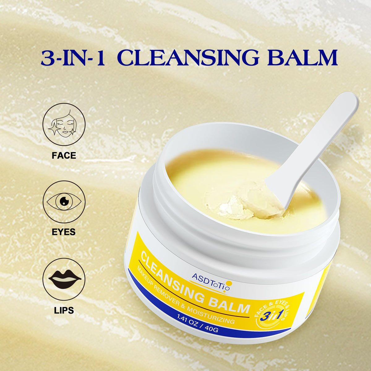 ASDToTio 3 in 1 Cleansing Balm- Eye Face Lip Cleansing Balm Makeup Remover,Natural Gentle, Deep Cleaning, Made for All Skin Types