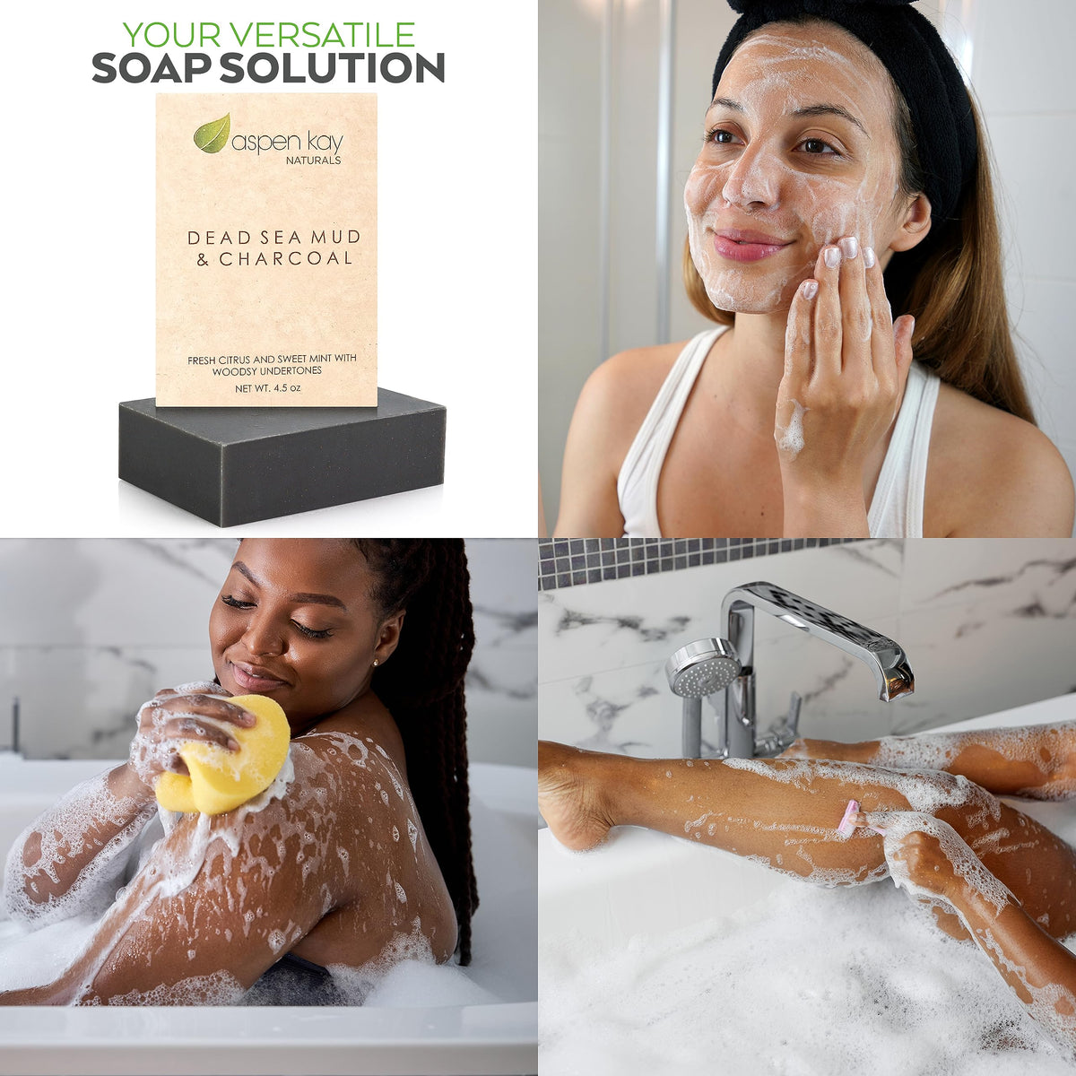 Aspen Kay Naturals Handmade Dead Sea Mud Soap Bar, Activated Charcoal & Pure Essential Oils, 4.5 oz Bar