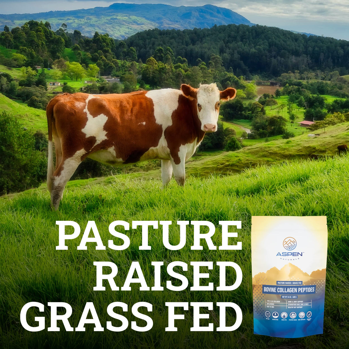 ASPEN NATURALS Bovine Collagen Peptides Powder is a premium blend of Type I & III collagen sourced from Grass Fed, Pasture Raised cattle. This unflavored powder supports healthy hair, skin, nails, and gut health.