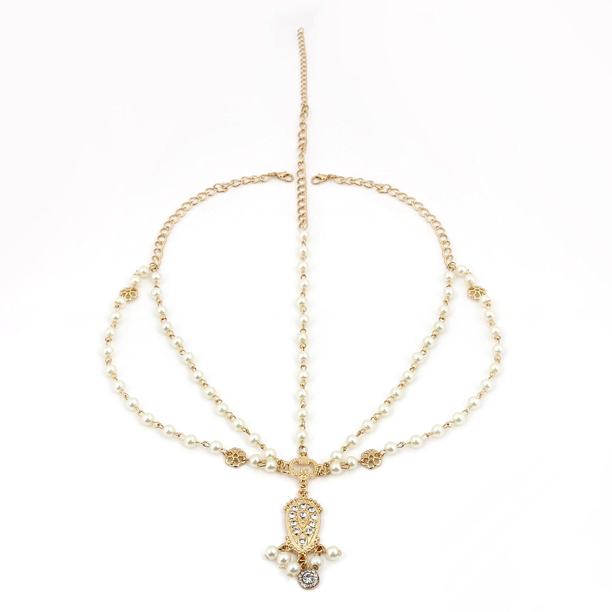 Aukmla White Indian Chain Hair Jewelry is a stunning headpiece that adds a touch of elegance to any hairstyle. Perfect for boho festivals or special occasions, this head chain with pearls and beads is a unique accessory for women and girls.