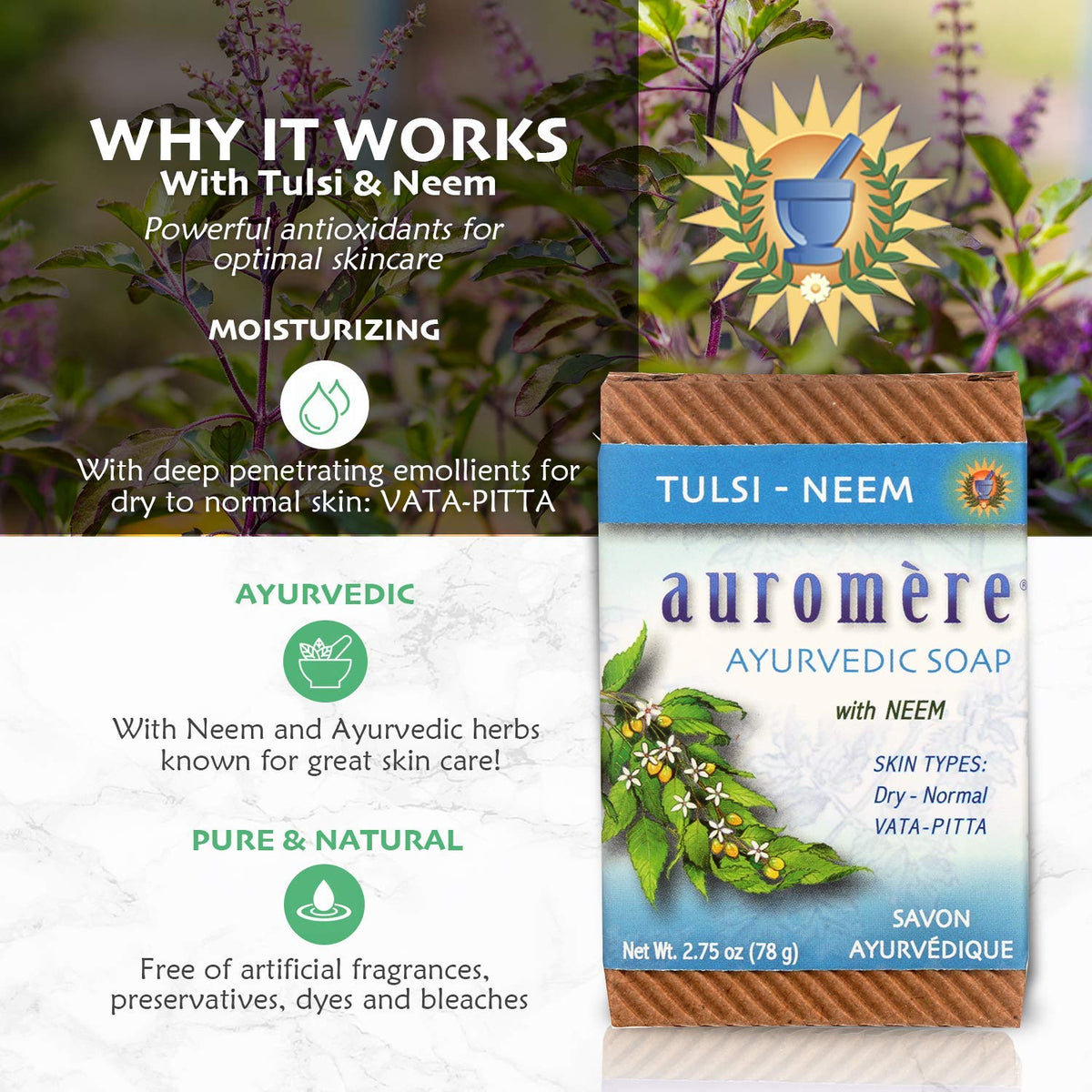 Auromere Ayurvedic Bar Soap Tulsi Neem 2.75 oz (5 Pack)