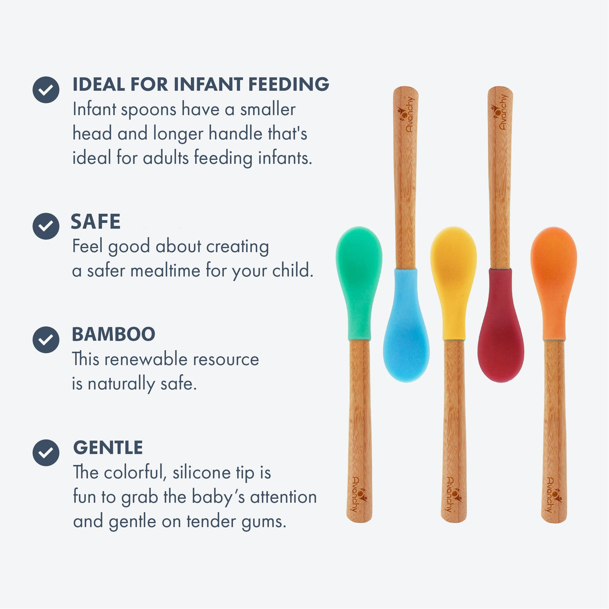 Avanchy Bamboo & Silicone Infant Training Spoons, BPA Free - Soft Tip, Easy on Gums, First Stage Feeding Utensils for Baby-Led Weaning, Self-Feeding, Green